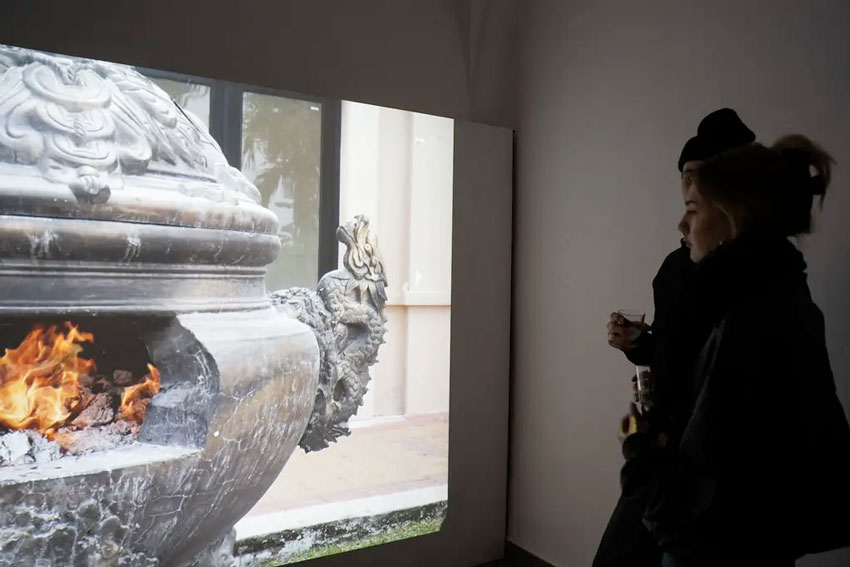 From this experience emerged 3 Million, a video documenting a performative action in which three million dollars in Joss Paper are burned in a funeral furnace on the outskirts of Ho Chi Minh City — one dollar for each victim of the war. The act draws on an ancient Chinese ritual, still practiced across much of East Asia, and combines remembrance of the victims with a reflection on the historical and economic responsibilities of the West.